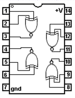 En otras palabras: Con una compuerta lógica NOR se puede lograr el comportamientode una compuerta lógica NOT. Ver el siguiente diagrama.